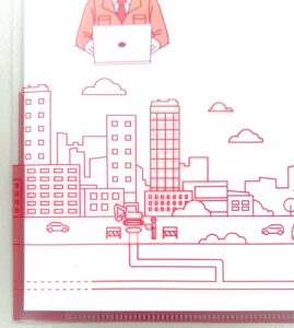 このクリアファイルは、デザイナーさんに依頼をして作成していただきました。