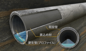 SPR工法とは既設管の内側に硬質塩化ビニル製プロファイルを製管し、